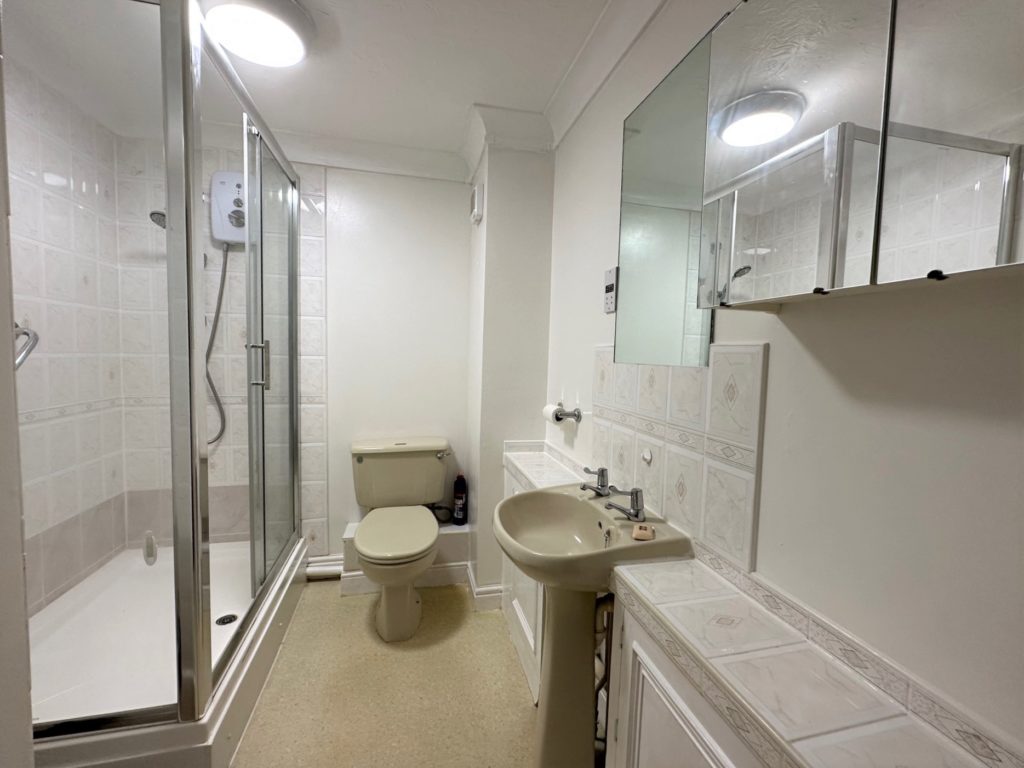BATHROOM: - Enclosed double shower cubicle with electric power shower, Low level WC with vanity surround, pedestal single sink with vanity surround, cupboard with mirror, heated towel rail, part-tiled walls, coved ceiling, extractor fan, shaver point.