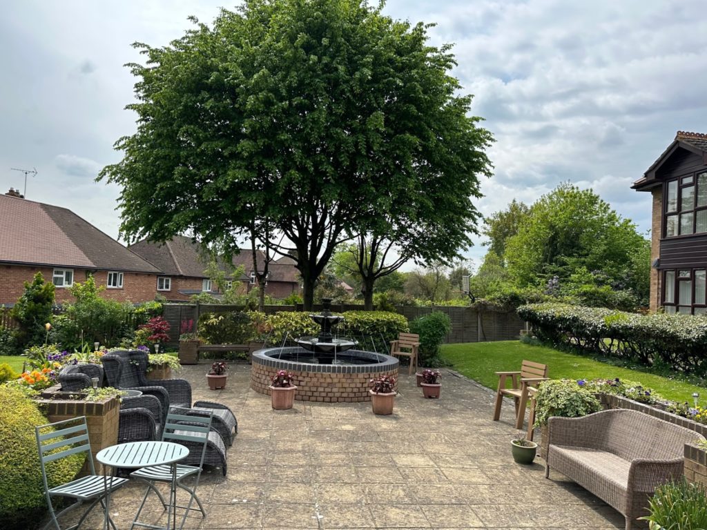 OUTSIDE: - Well kept communal gardens, with large patio area, a feature fountain and seating areas.