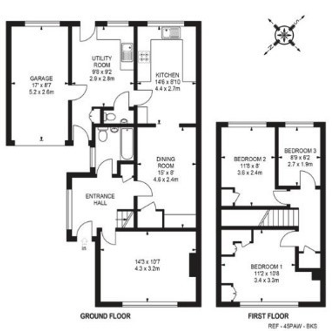 ENTRANCE HALL:- Stairs to first floor, secondary glazed window to the side, cloaks cupboard:- BATHROOM: Panel enclosed bath, pedestal wash hand basin, low level WC, side aspect double-glazed frosted window, tiled walls, radiator. SITTING ROOM:- (14’7 10’7) Front aspect double -glazed window, radiator, television point, telephone point, coved and artexed ceiling. DINING ROOM:- (15’x 8’) Radiator, built in cupboards, archway to:- KITCHEN:- (14’6 x 8’10) A range of wall and base level units with ample roll top work surfaces, single sink unit with mixer tap and drainer, built in double oven, four ring gas hob with extractor fan above, space for fridge/freezer, rear aspect double glazed window, tiled flooring, part tiled walls, door to Utility room. UTILITY ROOM:- Rear aspect double glazed windows, door to rear garden, door to garage, door to front driveway, a range of cupboards with plumbing and space below for washing machine etc. CLOAKROOM:- Low level WC, wall mounted wash hand basin, extractor fan. FIRST FLOOR LANDING:- Access to loft space via loft ladder, airing cupboard with radiator. BEDROOM ONE:- (11’2 x 10’8) Front aspect double glazed windows, radiator, telephone point, fitted wardrobes. BEDROOM TWO:- (11’8 x 8’) Rear aspect double-glazed window, walk in wardrobe, radiator. BEDROOM THREE:- (8’9 x 6’2) Rear aspect double-glazed window, radiator. OUTSIDE:- To the front the garden has an area of lawn with flower and shrub borders, with a driveway to the side providing off-road parking leading to garage. To the rear the garden is fully enclosed, secluded and comprises an area of patio leading to lawn, a shed and a gate leading to a small stream at the bottom of the garden. GARAGE:- Currently the garage has been converted into a fourth bedroom. COUNCIL:- Bracknell Forest Borough Council.