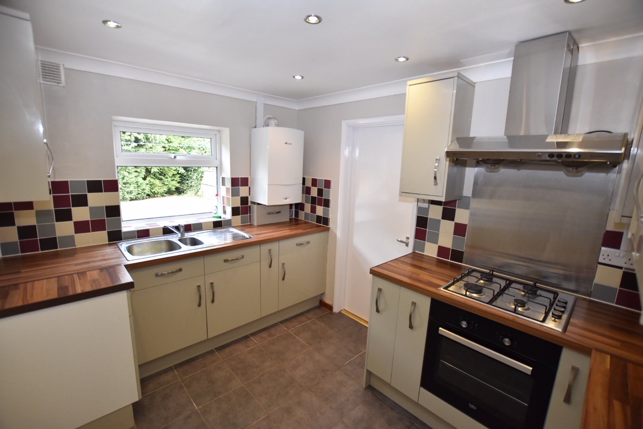 KITCHEN: - (10’5 x 8’1) Rear aspect, a range of eye and base level units with rolltop work surfacing, built in oven and 4 ring gas hob, space for fridge freezer, double glazed windows and door to small lobby, leading to side passage giving access to the garden, garden room and garage.
