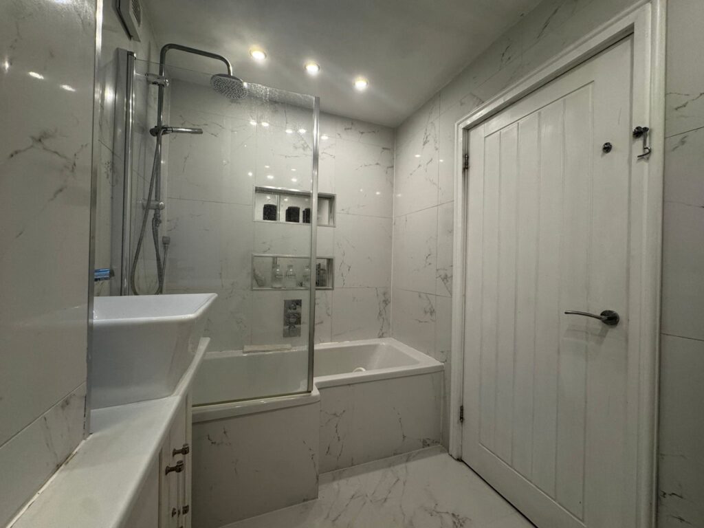 COMMUNAL ENTRANCE HALL:- Stairs giving access to all floors. ENTRANCE AREA:- Spacious storage cupboard, access to open plan kitchen/living/dining room, bedrooms and bathroom. LIVING/DINING ROOM:- 5.9m x 7m (19’4 x 23’1) Dual aspect, Amtico flooring, premium built in media wall with flame effect electrical fire, telephone point, radiator, double glazed windows, double glazed patio door. KITCHEN:- 3.57m x 1.88m (11’9 x 6’2) A fitted kitchen comprising a range of base level units with ample Quartz work surfaces, built-in oven and hob with extractor fan over, sink with mixer tap and drainer, built-in fridge/freezer, tiled floor, built in washing machine, part tiled walls, inset spot lights, rear aspect, double glazed windows. BATHROOM:- Rear aspect, white suite comprising panel enclosed bath with mixer taps and separate thermostatic shower above, wash hand basin with mixer taps, low level WC, radiator, fully tiled walls, extractor fan. MASTER BEDROOM:- 4.27m x 3.31m (14’ x 10’11) Front aspect, telephone point, television point, built in wardrobes, double glazed windows BEDROOM TWO:- 2.81m x 3.56m (11’8 x 9’3) Rear aspect, double glazed windows, radiator, television point. OUTSIDE:- To the front, rear and surrounding acre the gardens are maintained and has small fencing with shrub borders, to the rear the property has the garages and parking for communal use. PARKING: Garage in block with up and over door. Additional parking to the front MAINTENANCE: approx. £2000 P.A GROUND RENT: £10 P.A. LOCAL COUNCIL AUTHORITY: - Windsor and Maidenhead Council