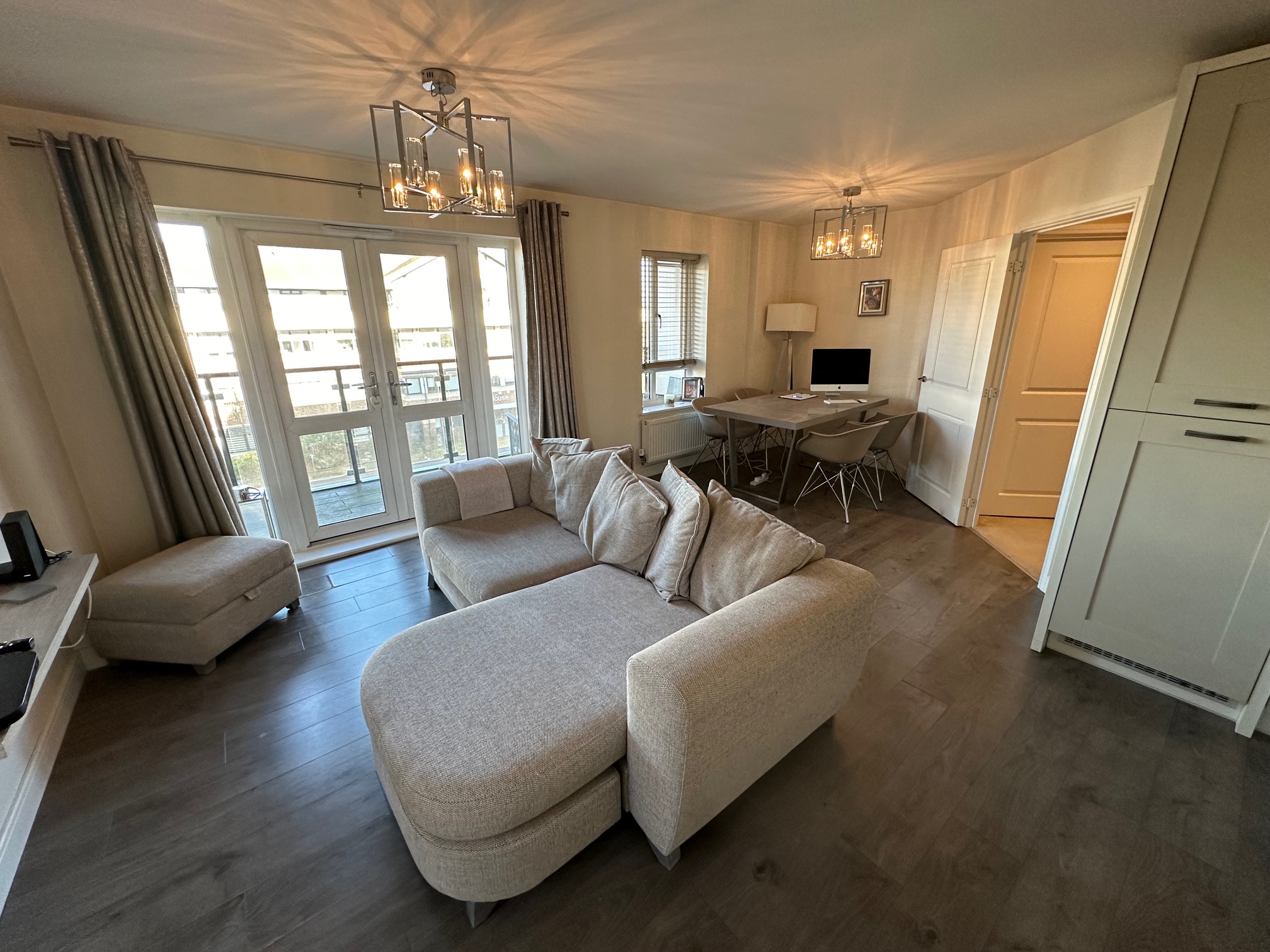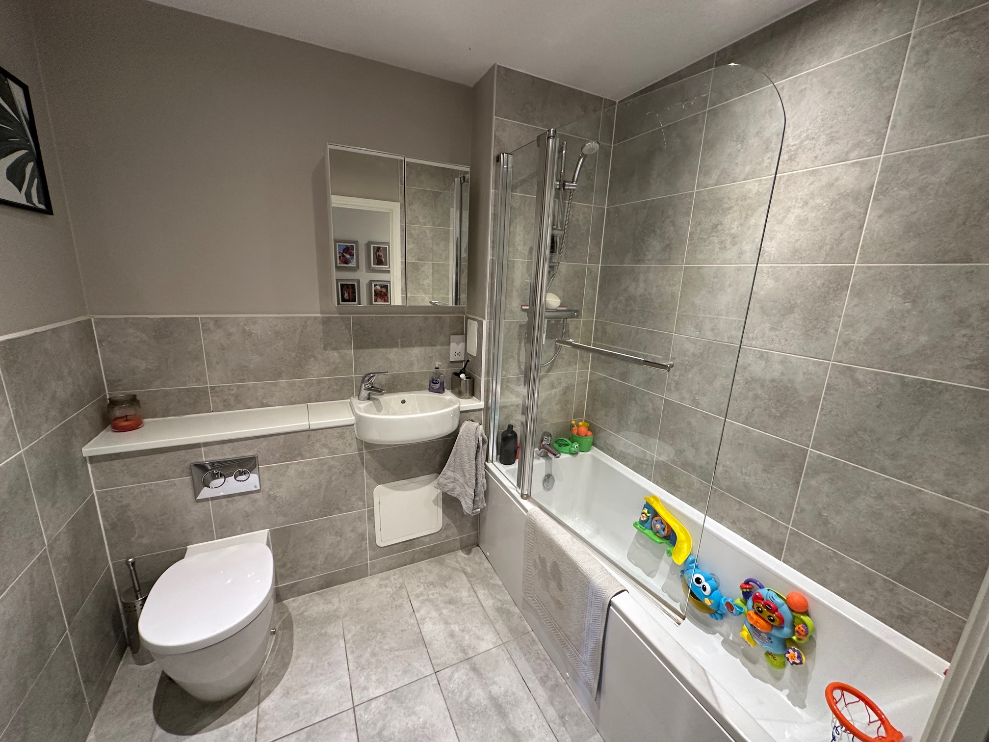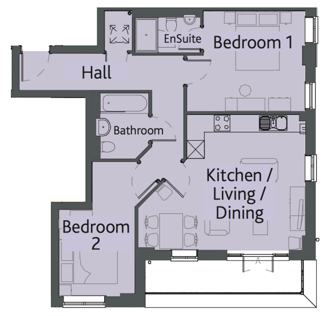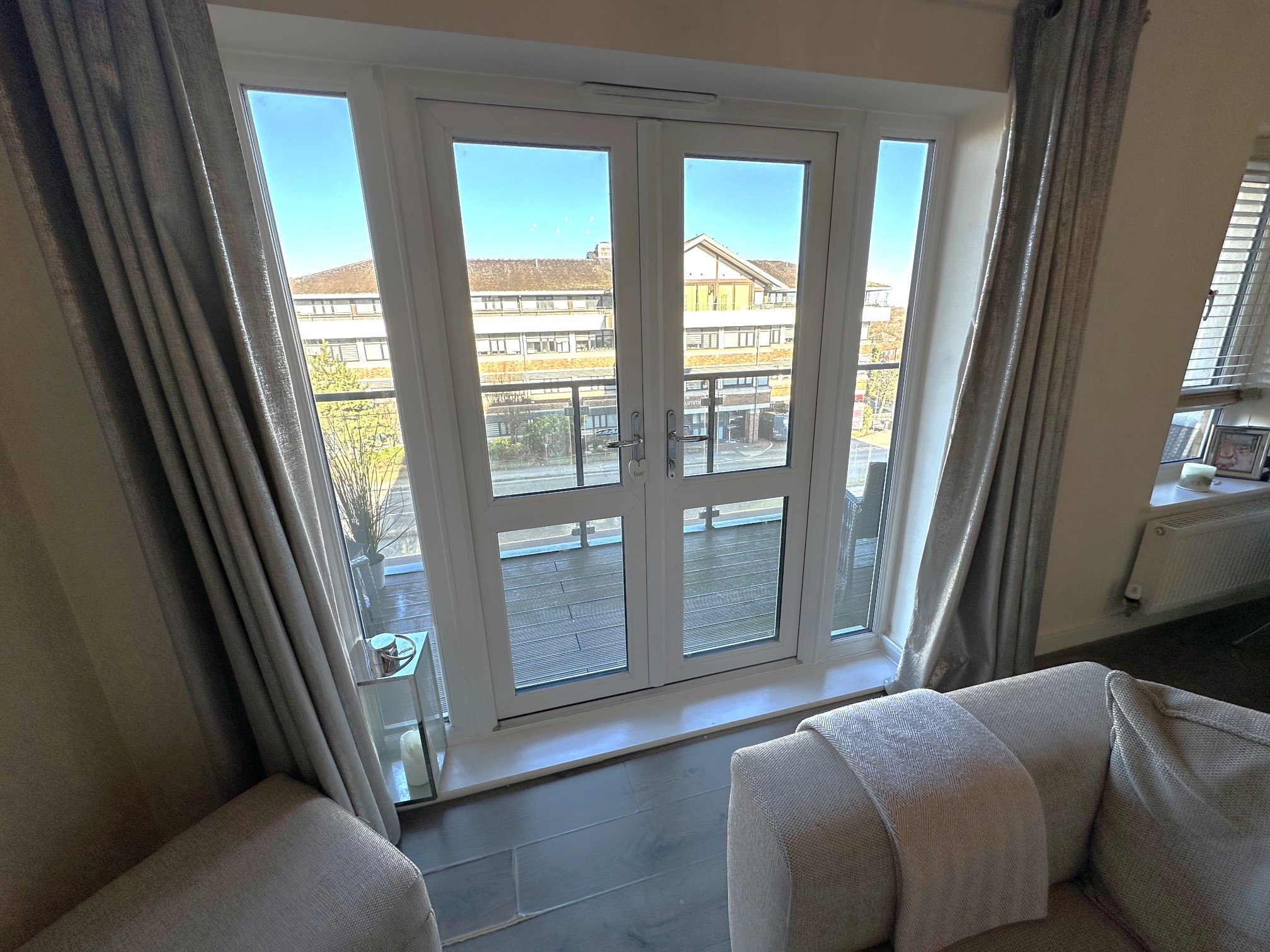 ENTRANCE HALL: (18’7 x 4) - Storage cupboard with space and plumbing for washing machine, storage heater, access to: MASTER BEDROOM: - (13’1 x 11’) Spacious single aspect double-glazed window, fitted wardrobes, radiator, door to: EN-SUITE SHOWER ROOM: - A white suite comprising tiled shower cubicle with power shower, wash hand basin, low level WC, heated towel rail and large mirror unit. BATHROOM: (7’2 x 6) - White suite comprising panel enclosed bath with mixer taps and shower attachment above, vanity wash hand basin, low level WC, part-tiled walls. BEDROOM TWO: - (15’1 (max) x 8’9) Front aspect, double-glazed Juliet balcony doors, radiator. OPEN PLAN LIVING AREA / KITCHEN: - (18’7 x 15’4) Incorporating the kitchen, a spacious dual aspect room with double glazed windows, patio doors to balcony, TV point, Sky connection, Fibre broadband connection, radiators, space for dining table. The kitchen area flows along the rear walls with work surfaces over cupboards and drawers, wall units, one and a half bowl sink with mixer tap, integrated fridge/freezer, four ring oven hob with extractor hood, plumbing and space for built in dishwasher, hard wood flooring. LOCAL COUNCIL AUTHORITY: - Bracknell Forest Borough Council. Council tax band C OUTSIDE: - Well-kept communal gardens, lawned with many shrubs and trees. Residential parking spaces. LEASEHOLD: - The 125 year lease commenced in 2017. Ground Rent is £200. Annual Maintenance Charge is £1200.