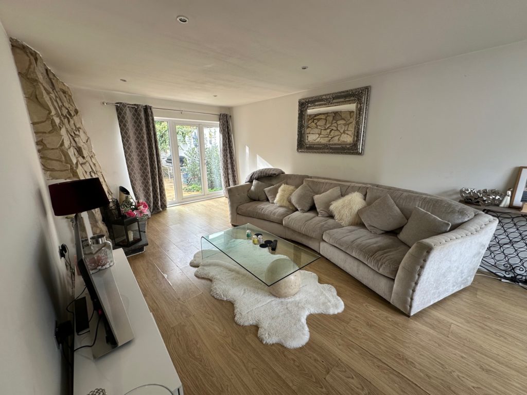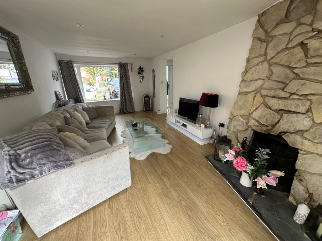 ACCOMMODATION: ENTRANCE HALL: - Front aspect, laminate wood flooring LIVING/DINING ROOM: (21’5 x 11’10) – Benefits from dual aspect with uPVC double glazed windows to the front, uPVC double glazed patio doors to the rear garden laminate flooring, with fully working feature fireplace, TV point KITCHEN: (14’6 x 10’10) Rear aspect, a fitted kitchen with white floor and wall units with roll top work surfacing, built in oven with electric oven and extractor fan above uPVC double glazed windows to rear FRONT BEDROOM: (11’3 X 9’9) – Front aspect, uPVC double glazed windows, radiator, dressing area REAR BEDROOM: (14’6 x 10’9) – Dual aspect, radiator, uPVC double glazed window, built in cupboard MID BEDROOM: (9’7 x 7’9) – Single aspect, radiator, uPVC double glazed window, BATHROOM: - A white suite comprising a low-level WC, pedestal wash hand basin and panel enclosed bath with power shower above, a heated towel rail, uPVC double glazed windows GARAGE:- A double garage which is currently partitioned into a storage area and lockable working room, with direct access through to the garden GARDEN: - To the front the driveway for four cars, with a pathway to the front door. To the rear the large garden south facing and fully enclosed by panel fencing and mature hedging getting plenty of natural light mainly laid to lawn with two patio areas.