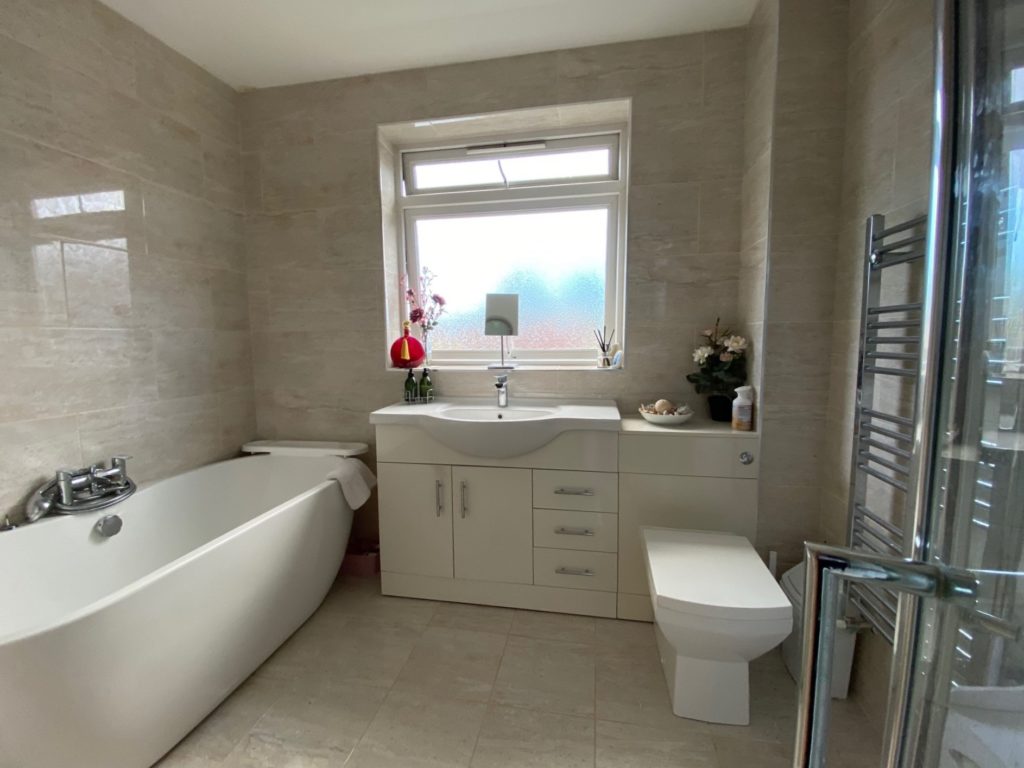 ENTRANCE HALL: - Dual aspect, tiled floor, door through to: - INNER LOBBY: - Under stair storage cupboard, half turn stairs to first floor, radiator. CLOAKROOM: - Frosted double-glazed window, low level WC, wall mounted wash hand basin, extractor fan, part tiled walls. SITTING ROOM: - (17’0 x 12’7) Front aspect, radiator, double-glazed bay window to the front, television point. Open plan to:- DINING AREA: - (10’6 x 9’7) Rear aspect, radiator, double glazed patio doors to garden. FAMILY ROOM: - (16’2 x7’5) Single aspect, laminate wood flooring. KITCHEN:- (11’3 x 10’6) Rear aspect, a range of eye and base level unit with work surfacing, double sink with mixer taps, built in electric oven with separate five ring gas hob and extractor fan above, part tiled walls, radiator, plumbing and space for washing machine dishwasher, door to side pathway. LANDING: - Single aspect, double glazed window, airing cupboard housing large lagged copper cylinder, access to loft space. BEDROOM 1: - (14 ‘7 x 11’) Front aspect, double glazed windows, a range of built in wardrobes, radiator, TV. point, telephone point. BEDROOM 2: - (14’8 x 9’8) Rear aspect, double glazed window, fitted wardrobes, radiator, TV point. BEDROOM 3: - (10’9 x 7’11) Rear aspect, double glazed window, radiator, TV point. BEDROOM 4: - (9’ x 7’6) Front aspect, double glazed windows, radiator, TV point. BATHROOM: - Rear aspect, frosted double-glazed window, four pieces suite comprising bath with mixer taps, shower cubicle with power shower, wash hand basin with cupboards, low level WC, fully tiled walls. OUTSIDE:- To the front there is parking for three cars leading to the garage, with additional area of display garden with flowers and shrubs, to the rear garden is enclosed laid mainly to lawn with a patio area, raised wooden decking and a shed. GARAGE:- Up and over door, light and power.