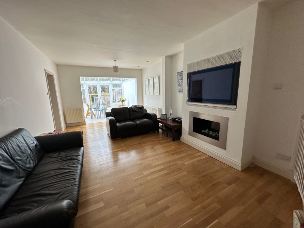 ENTRANCE HALL: - Hallway leading through to: LIVING ROOM/DINING ROOM: (22’5 x 11’6) - Rear aspect, hardwood flooring, feature fire place, stairs to first floor, open plan to conservatory, TV point. FAMILY ROOM: (10’10 x 9’11) Front aspect, double glazed bay windows, original wrought iron fireplace with surround and shelving. CONSERVATORY: (11’3 x 10’11) Rear aspect, tiled flooring, brick and glazed construction, doors to rear garden. KITCHEN: (13’8 x 10’4) - Rear aspect, One and a half bowl sink with mixer taps and drainer, a range of eye and base level units with granite work surfacing, a range oven with five gas burners, double glazed window, doors to utility room and rear garden. UTILITY ROOM: (7’11 x 7’11) - Side aspect, boiler, ample work surfacing with space for appliances, door to garage and :- CLOAKROOM: Low level WC, wash hand basin and extractor fan. LANDING: - Doors to all rooms:- MASTER BEDROOM: (26’9 x 10’5) - Dual aspect, double glazed windows, radiator door to – EN-SUITE: Enclosed shower cubicle, low level WC, wash hand basin, heated towel rail. BEDROOM 2: (15’6 x 12’) - Rear aspect, radiator, double glazed window BEDROOM 3: (10’1 x 9’11) – Front aspect, wrought iron fireplace, built in cupboards, double glazed windows, . BATHROOM: - A white suite comprising a low-level WC, pedestal wash hand basin and panel enclosed bath with shower above, radiator, extractor fan fully tiled. GARDEN: - To the front the driveway, with a pathway to the front door. To the rear the garden is fully enclosed by panel fencing and mature hedging getting plenty of natural light, a multi level decked area leading to lawn area GARDEN OFFICE: - A brick built building fully insulated with power, lighting and heating a great work from home space. GARAGE: (17’7 x 7’11) - Good sized single garage with additional storage space, power roller door with driveway of two parking spaces in front.