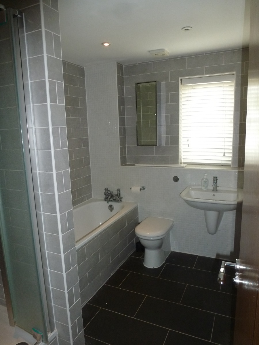 FAMILY BATHROOM: - A four piece white suite comprising a low level WC, panel enclosed bath with mixer taps and shower attachment, wall mounted sink and a separate shower cubicle with power shower.
