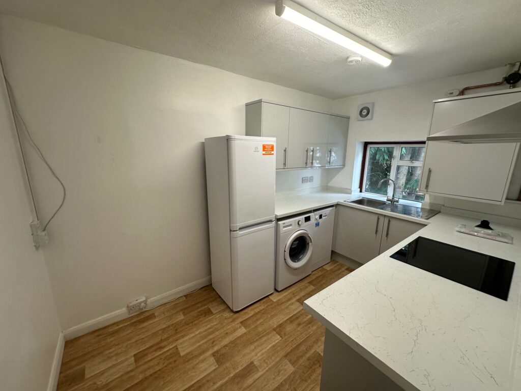 - Kitchen (12′ x 7’6) – fitted with white goods