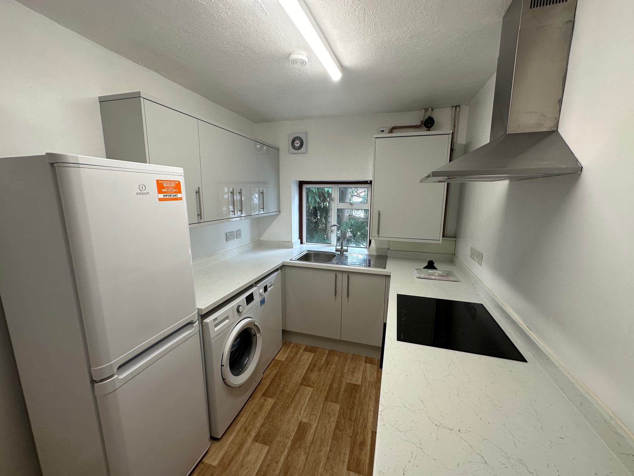 - Kitchen (12′ x 7’6) – fitted with white goods